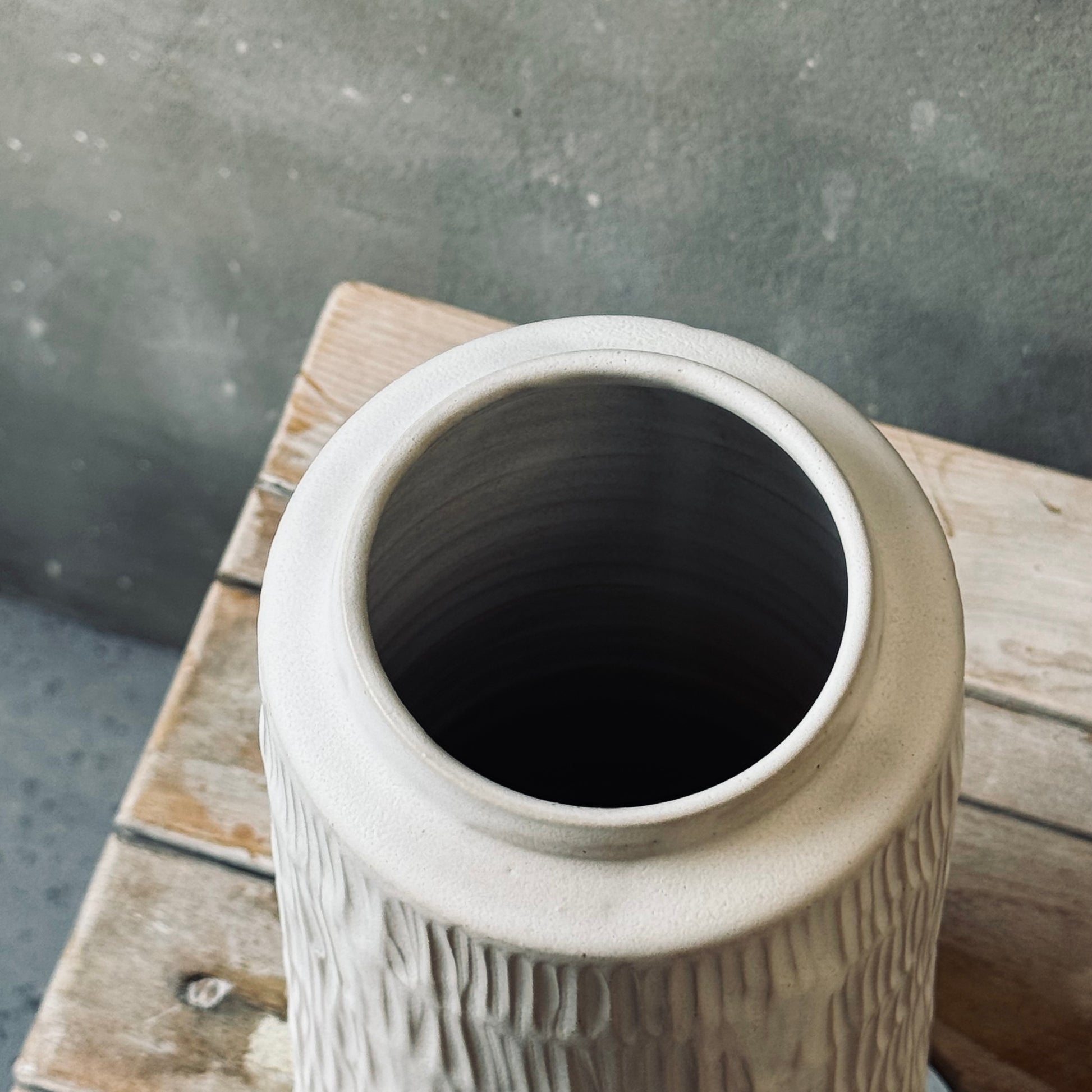 The Carved vases are thrown on the potter’s wheel using high-fired white stoneware.Each form is carefully shaped and then hand-carved with an organic, flowing pattern.
