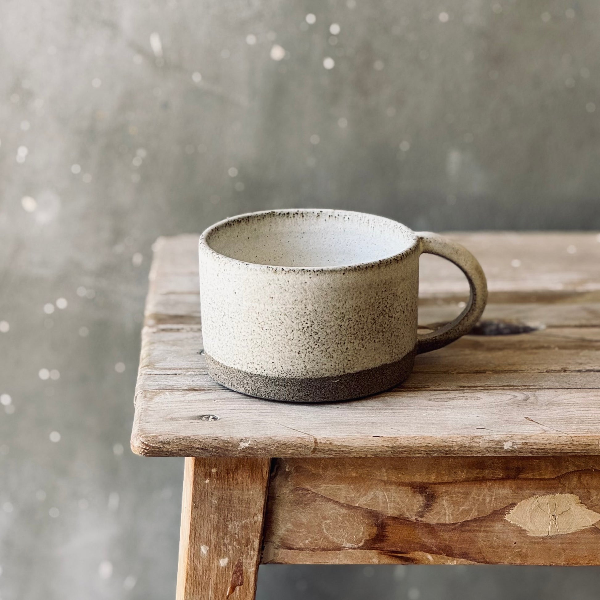 The ceramic Tea cups are hand-made on the potter's wheel using high-fire stoneware clay. It's made with a beautiful grey chamotte clay and glazed with a white satin glaze.